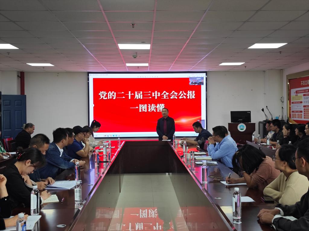 会上,公司党委书记樊帆结合二十届三中全会会议精神的框架图,对会议精神进行了全面而深入的宣讲。他通过生动的讲解和形象的图示,使教职工们更加清晰地理解了会议的核心内容和精神实质,引导大家将会议精神融入日常的教学、科研和管理工作中。大会还组织全体参会人员共同学习了“习近平在全国教育大会上强调 紧紧围绕立德树人根本任务 朝着建成教育强国战略目标扎实迈进”“习近平在全国民族团结进步表彰大会上发表重要讲话强调 推进中华民族共同体建设 巩固发展中华民族大团结”等内容。