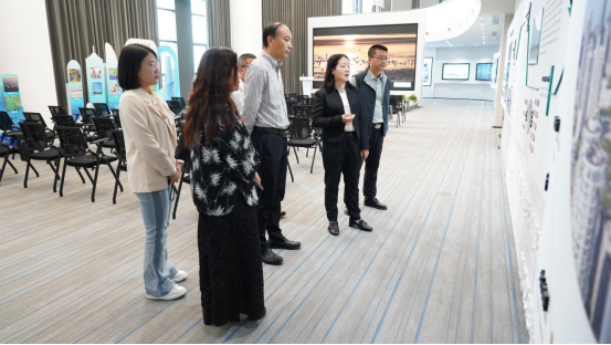 座谈会前,蔡观带领杜国锋一行参观“首义论碳”展厅,并详细介绍了碳市场的发展历史及武昌区打造碳金融集聚区的具体实践。