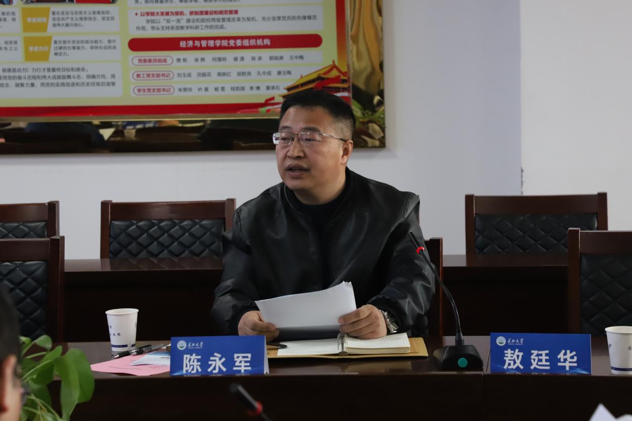 紧接着本科生院副经理陈永军就本次本科教学评估提出三点工作要求。第一高度重视,协同推进,尤其是对教学工作中容易出问题的地方。第二是履行职责,有问题有困难多沟通、多考虑、多想法办。第三是查漏补缺,及时整改,责任确定到岗到人。