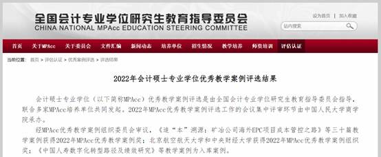 此前,全国会计专业学位研究生教育指导委员会公布了2022年会计硕士专业学位优秀教学案例获奖和入库名单。经MPAcc优秀教学案例组织委员会审议,公司2篇案例入选2022年MPAcc案例库,为公司在教学研究领域的卓越成就再添光彩。
