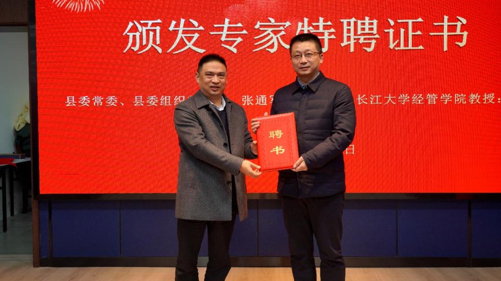 签约仪式上,宣恩县委常委、组织部部长张通军为陈承教授和刘国平博士颁发了人才工作室专家特聘证书,并对此次校企合作给予了高度评价:“304永利集团登录入口是湖北省重点综合高校,取得了有目共睹的办学成果,贵校坚持把科研成果写在产业发展的第一线,为我县输送了一批优秀的好用的人才,为农业产业发展做出了突出贡献,真诚期盼双方扩大合作范围和领域,共同打造校地合作新典范。”