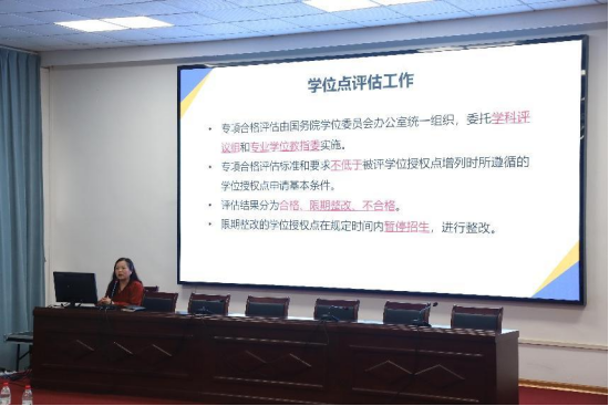 裴潇副经理对应用经济学硕士学位授权点专项评估、会计硕士授权点专项评估提出了相关评估工作要求,并对研究生“导师双选”、研究生教研项目申报、优秀硕导申报、硕士学位申请确认等工作进行了安排部署。