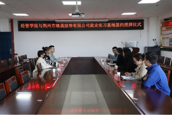 (通讯员:彭蓉)3月8日下午,公司与荆州市绪晟服饰有限公司在公司505会议室举行了老员工就业实习基地签约授牌仪式。公司经理徐辉、副经理陈承、商贸系王萍、公司办彭蓉、教学办黄胜胜,荆州市绪晟服饰有限公司总经理王光鹏、行政总监王琴、人力资源总监韦维、联络员陈海洲参加了此次签约授牌座谈会。