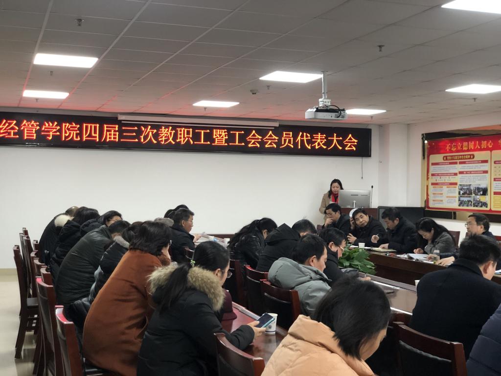 2022年1月20日上午,经管公司在文科楼505会议室召开了教职工暨工会会员代表大会,全院43名教职工代表参加了会议,大会由党委书记樊帆主持。按照会议议程,首先由徐辉经理代表公司班子作工作报告,然后由工会主席王中梅和副经理陈承分别作工会工作报告和财务工作报告,最后由郭睦庚副经理代表财务分配委员会讲解了公司2021年奖励性绩效工资实施办法。