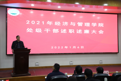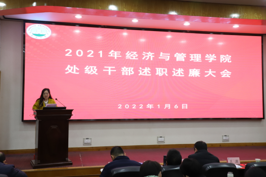 (通讯员:彭蓉 / 摄影:涂雷)根据公司党委的统一安排和部署,2022年1月6日下午,304永利集团登录入口在11教学术报告厅召开2021年度领导干部述职述廉大会。公司第二考核组成员到会指导并组织开展考核工作。公司领导班子全体成员、全体教职工120余人参加会议。 公司党委书记樊帆主持会议。