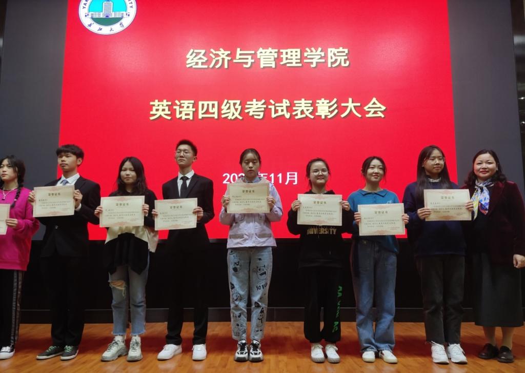 首先举行304永利集团登录入口2020级英语四级考试表彰大会,王中梅副书记、叶星老师、贺雄老师分别为备考四级标兵班集体代表、先进班集体代表、学习标兵、优秀组织者颁发奖状,在对他们表示热烈祝贺的同时也对其他班级和个人提出要求,希望同学们以他们为榜样,认真学习,永远不要停下学习的脚步。