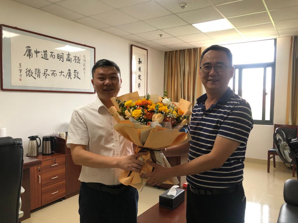 王建平副书记来到徐辉教授和李诗珍教授的办公室,与他们亲切交流,了解他们的教学科研工作进展与成果,向他们长期以来为公司发展做出的积极贡献表示诚挚的感谢,并送上鲜花和祝福;王建平副书记希望两位教授能继续发挥自身的优势和专长,在学科专业建设、创新团队打造、产学研工作等方面发挥核心作用。
