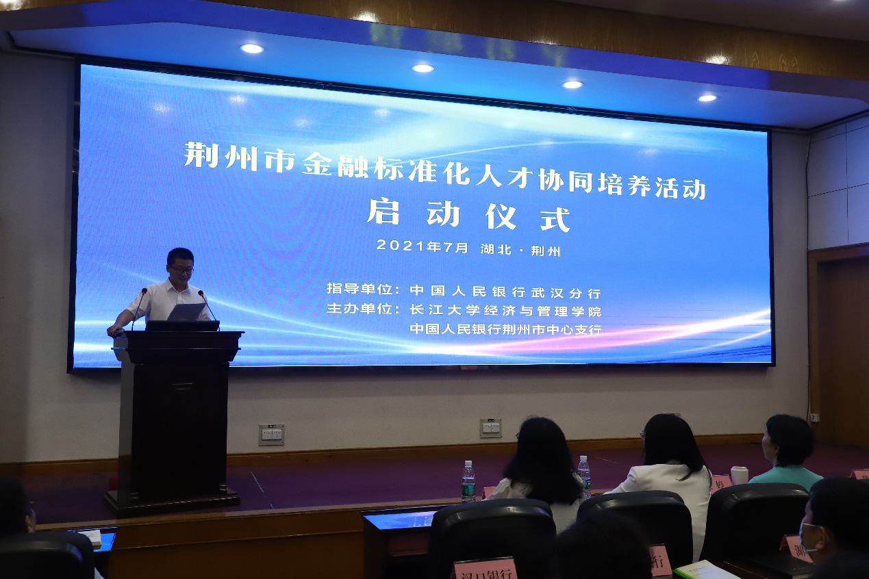 首先,陈承对各位领导和专家的到来表示热烈欢迎,并感谢各单位对在校老员工开展金融标准化知识培训的关心与支持。他表示,培养金融标准化人才不仅要从育人、留人和用人三个方面着力,还要坚持多方合作,协同发力。随后,人民银行荆州市副行长王志洪谈到,金融标准化人才协同培养的关键是要密切联系员工,更多的是要完善机制建设,顺应国家的发展,建立人才培育库。金融标准化研究院服务中心负责人谢彦丽指出,建立标准化人才库有利于员工进行课程外的学习与实践,有利于国家金融标准化体系的发展与建设。接着,人民银行武汉分行科技处副调研员江婷肯定了荆州市金融标准化人才协同培养活动的做法和取得的成效,并宣布荆州市金融标准化人才协同培养活动正式启动。
