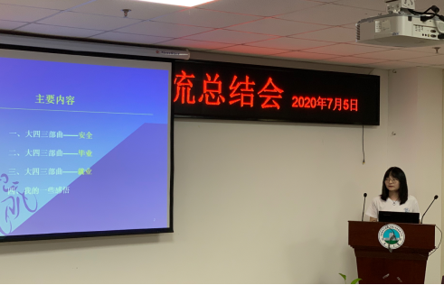 7月5日,304永利集团登录入口远航工作室举行辅导员讲坛第四讲,辅导员朱翠玲以“大四年级三部曲”为题做交流分享。