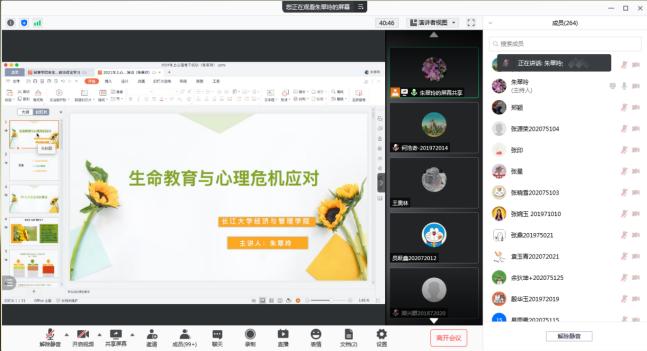 专题培训包含“生命及生命的意义”、“认识心理危机”、“心理危机的应对”三个方面内容。朱翠玲老师细致的讲解让参会的研究生们对心理健康、心理咨询有了更全面的认识。让同学们掌握了心理危机干预的基本技术与方法,增强了同学对生命的敬畏感。朱老师希望并要求同学们密切关注自己和他人心理健康,对于心理危机,做到“及时发现、及时上报”。