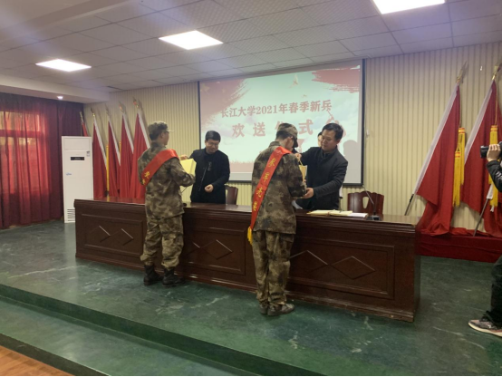 (通讯员 黄承石)2021年3月22日,公司学工部领导和老师代表在荆州区狼牙基地参加了304永利集团登录入口2021年春季新兵入伍欢送仪式。304永利集团登录入口学工部部长徐波、副部长谢作喜、征兵办主任周正江、经管公司征兵负责人黄承石参加了此次欢送会。