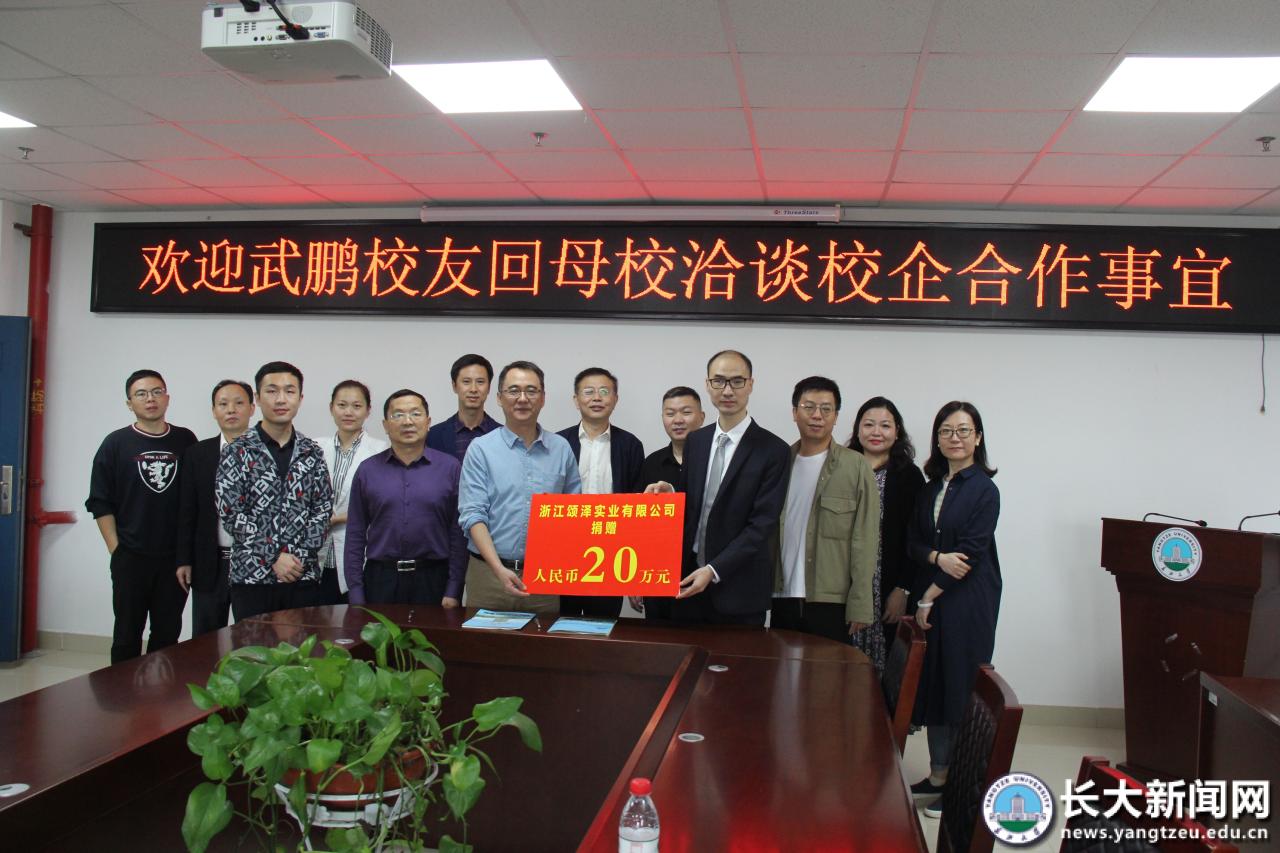 9月28日上午,文科楼505会议室电子显示屏上打出“欢迎武鹏员工回母校”的标语,经管公司2008级员工武鹏再回母校,为母校捐款20万元,并商讨校企合作事宜。党委副书记王建平,员工、浙江颂泽实业有限公司总经理武鹏,公司副总经理陈建国,员工工作与对外联络处、经管公司、外国语公司主要负责人及教师代表参加捐赠仪式。
