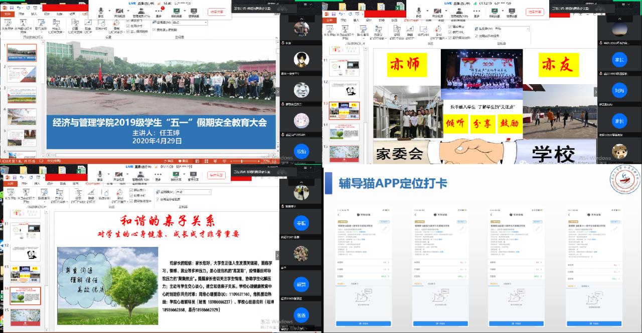 一是安全教育全覆盖无遗留。4月27日--30日,公司各年级各班分别召开了“五一”安全教育教育大会和线上家长会。班主任、辅导员通过雨课堂、腾讯会议、QQ群、微信群等网络平台,开展“五一”假期和疫情期间安全注意教育,重点围绕“防疫,交通,消防用电,防溺水,生活饮食,网络,居家心理,防诈骗”等八个主题展开,通过宣讲安全注意事项、列举案例、强调纪律等树牢员工安全意识。同时,公司在官网发布了安全提示,辅导员制作了安全教育PPT,公司还通过辅导猫平台开展了员工五一动向摸排,并给每一位员工发送了心理及安全提示。