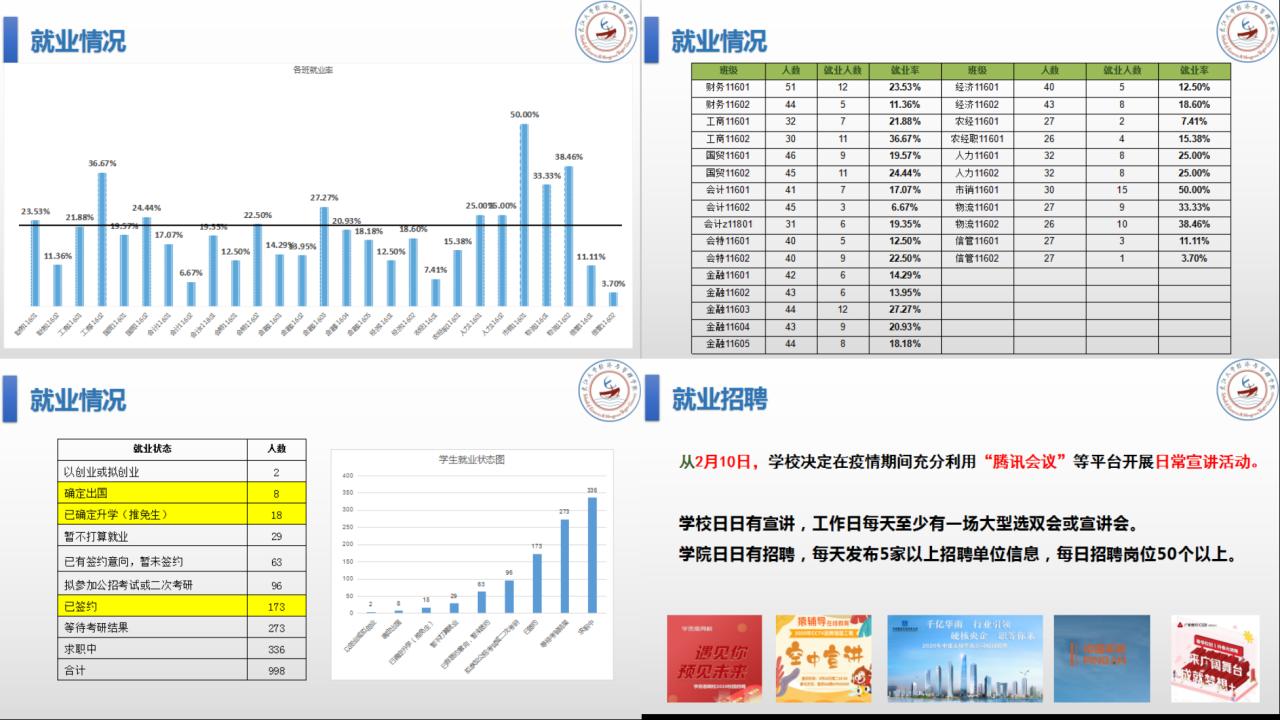 开就业班会,邀请已就业员工分享就业过程和经历,让大家了解就业的严峻性,引起大家的重视,进而加强班级就业成效。