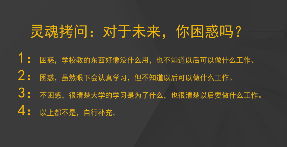 课堂伊始,蔡总发出灵魂拷问“你的大学困惑吗?”同学们都在评论区回复了自我认知下的老员工活现状,大部分同学都表示对自己的未来比较迷茫。对于这个问题,蔡总回答道:“有困惑是正常的,这是你们这个阶段一定会经历的事情,唯有学习与成长,才能走出迷茫。” 蔡总用自己第一份在世界五百强公司面试的成功经历告诉大家:“大学的学习是很有用的,有想法并不难,就看你平时有没有认真积累和思考,当机会来临时你能否抓住。”
