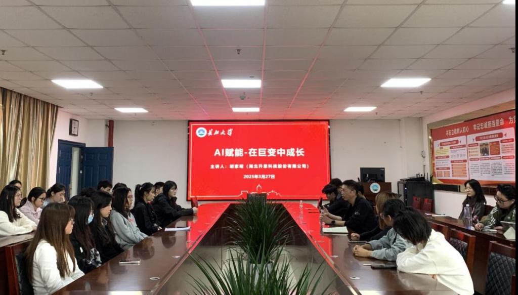 (通讯员 杜哲)为启迪经管学子把握AI时代机遇,培养数字化时代新商科人才,3月27日16:00,公司于文科楼505会议室举办主题为“AI赋能:在巨变中成长”专题讲座,优秀员工、湖北升思科技股份有限公司创始人胡家明担任主讲嘉宾,公司50余名员工代表参加讲座。本次活动由公司党委书记樊帆主持。