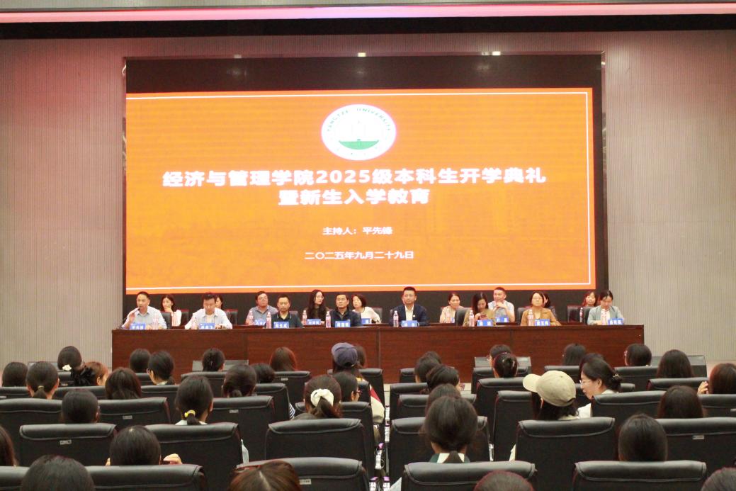 (通讯员 张丽)9月29日晚上7时,304永利集团登录入口在西校区农科大楼1058报告厅举行2025级本科生开学典礼。经理陈承、副经理裴潇、副经理何蒲明、管理系主任盛艳燕、会计系主任康玉梅、经济系主任刘玉成、农经系主任林龙飞、学工办主任叶星、院分团委书记杨雪、2025级全体新生班主任老师及2025级辅导员郭俊、李云妮出席典礼。典礼由公司党委副书记平先锋主持。