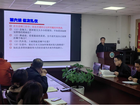 (通讯员 马晓娜)为全面提升行政队伍的专业化水平与综合素养,进一步夯实公司高质量发展的管理基础,公司于11月3日上午与11月6日,在505会议室成功举办了两期行政人员能力提升系列讲座之“现代公务礼仪”专题培训。本次系列培训由公司党委书记李喜成担任主讲,全院行政人员参加。