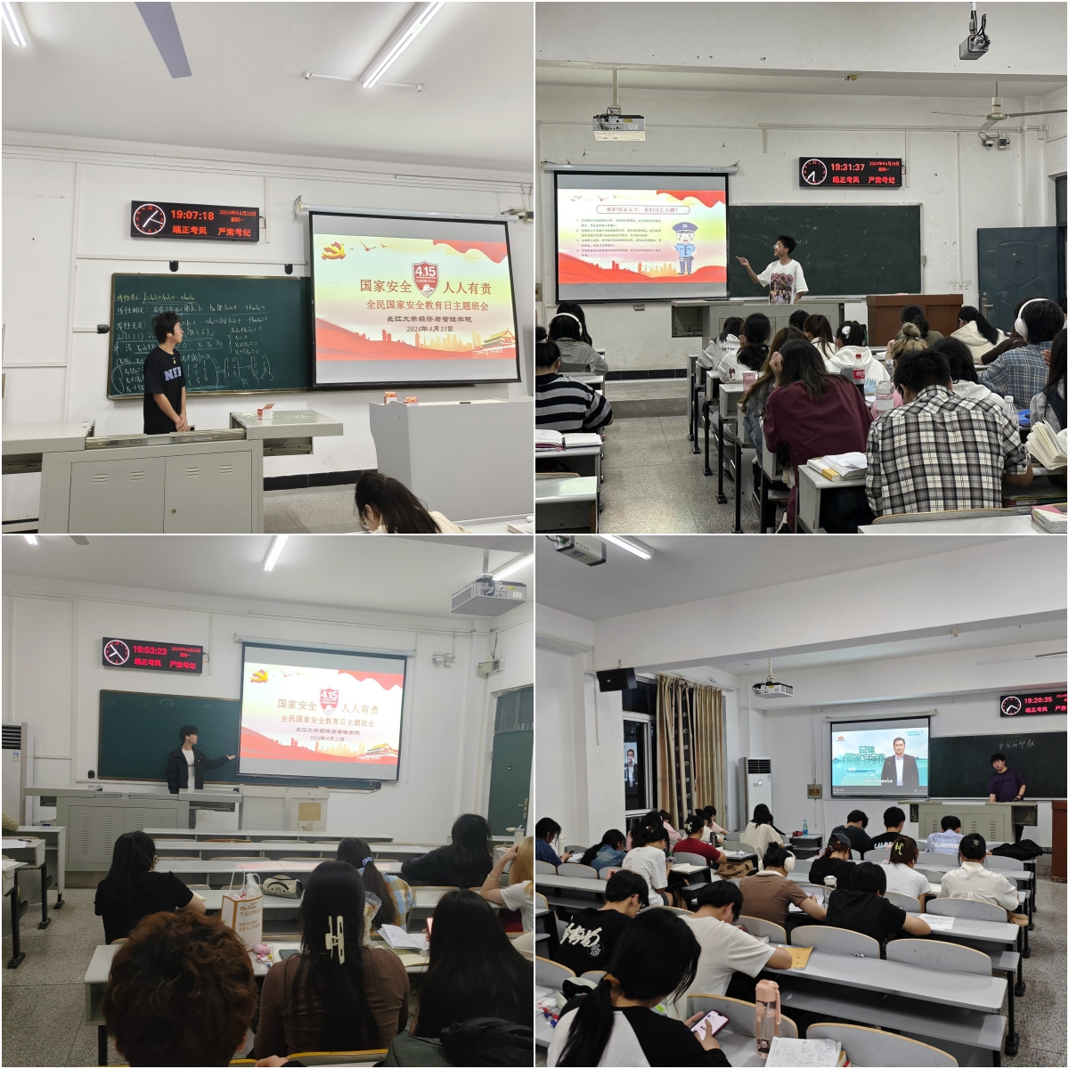 当天,各班级统一开展了“全国国家安全教育日”主题班会,由班级员工干部带领同学们一起学习国家安全知识,并利用晚自习时间集中观看了《千万高校员工同上一堂国家安全教育课》,专家们围绕总体国家安全观、军事安全、金融安全等领域,结合高校实际,立足员工视角,用真实生动的案例讲述了国家安全与每个人密切相关,也让同学们更加明确了自身肩负的使命与责任。