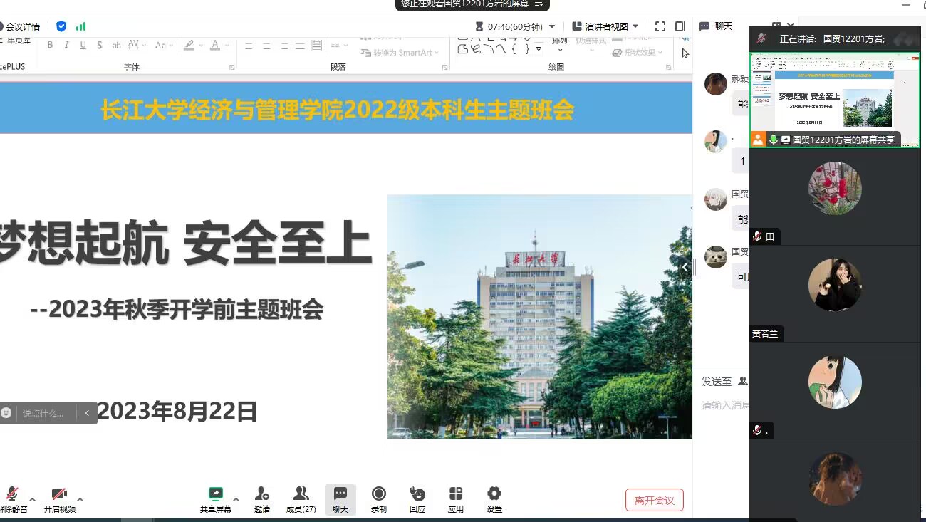 为确保秋季学期开学工作平稳有序,根据公司相关通知要求,304永利集团登录入口在新学期伊始,组织全院所有班级开展了2023年秋季学期第一次线上班会,班会的主题为“梦想起航 安全至上”。公司学工办对班会的开展进行了统筹安排,所有辅导员和班主任都积极参与其中,结合各年级员工的特点,对相关事项进行提醒和说明,为员工新学期的学习生活和师生沟通奠定良好基础。
