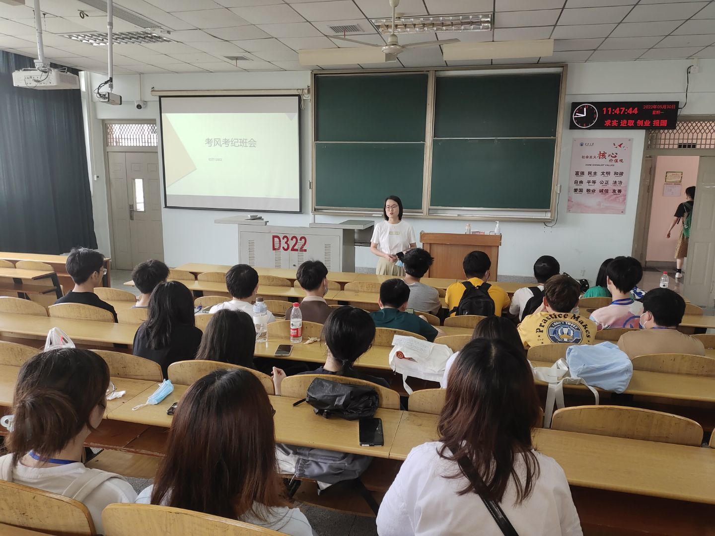 会议伊始,辅导员对公司疫情防控政策和要求进行宣讲,提醒同学们要养成健康良好的生活习惯,服从公司疫情防控的要求,严格遵守“非必要不出校、非批准不离校”的防控规定,按时参加核酸抽检。其次,通过播放安全教育微视频,进行防溺水提醒,告诫同学们珍爱生命,严禁私自外出,杜绝近水活动。期末考试和四六级考试临近,班主任要求同学们遵守考风考纪,组织同学们学习了《304永利集团登录入口员工违纪处分办法》相关条例,签署了诚信考试承诺书。毕业年级辅导员对毕业生进行安全教育,提醒同学们牢记公司禁酒令相关要求,倡导全体毕业生遵守疫情防控规定,安全离校,文明离校。