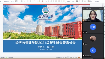 为促进家长和2021级新生更加深入地了解大学学习和生活,实现“家+校”零距离沟通,8月27日晚上,经济与管理公司组织召开2021级线上新生班会和家长会。党委副书记王中梅及新生辅导员李云妮、郭俊和别凡出席会议。