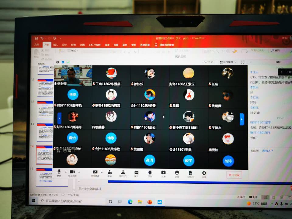 为增强同学们的安全意识,确保全体同学顺利返校,8月19至21日,经管公司以班级为单位,在线上召开了返校安全教育主题班会,班主任和辅导员参加了班会。