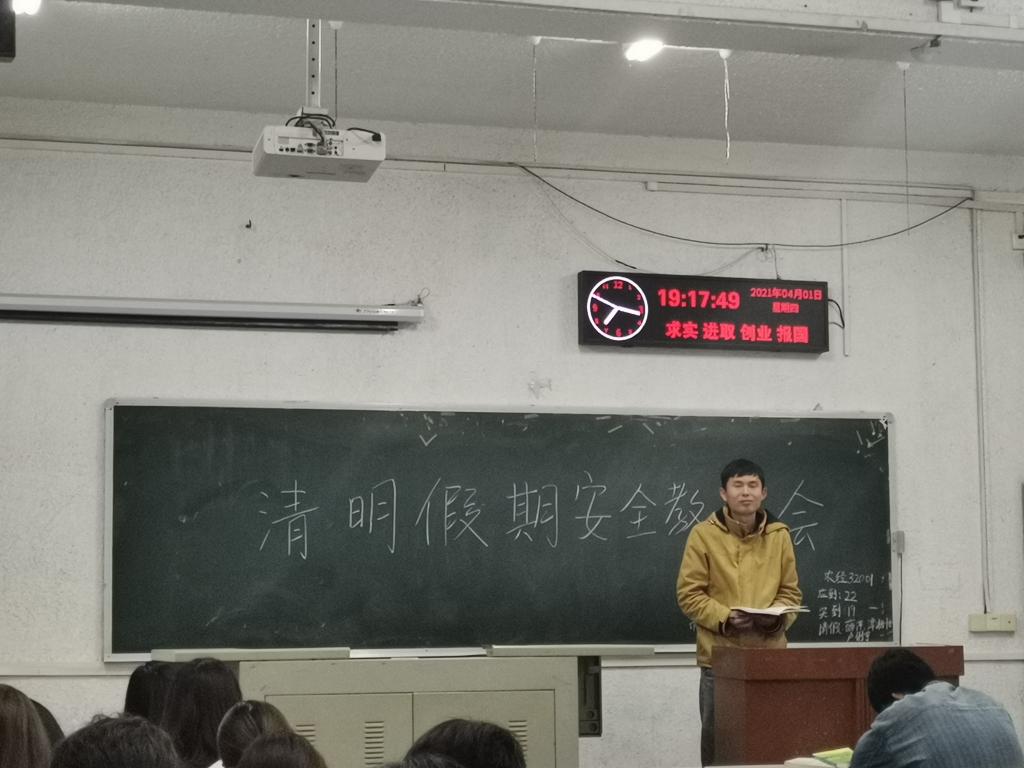 (通讯员 郭文杰)2021年4月1日晚7时,304永利集团登录入口2020级员工在西校区晚自习教室,召开了“清明”假期安全教育大会,会议由各专业辅导员叶星、贺雄、李云妮老师分别主持。