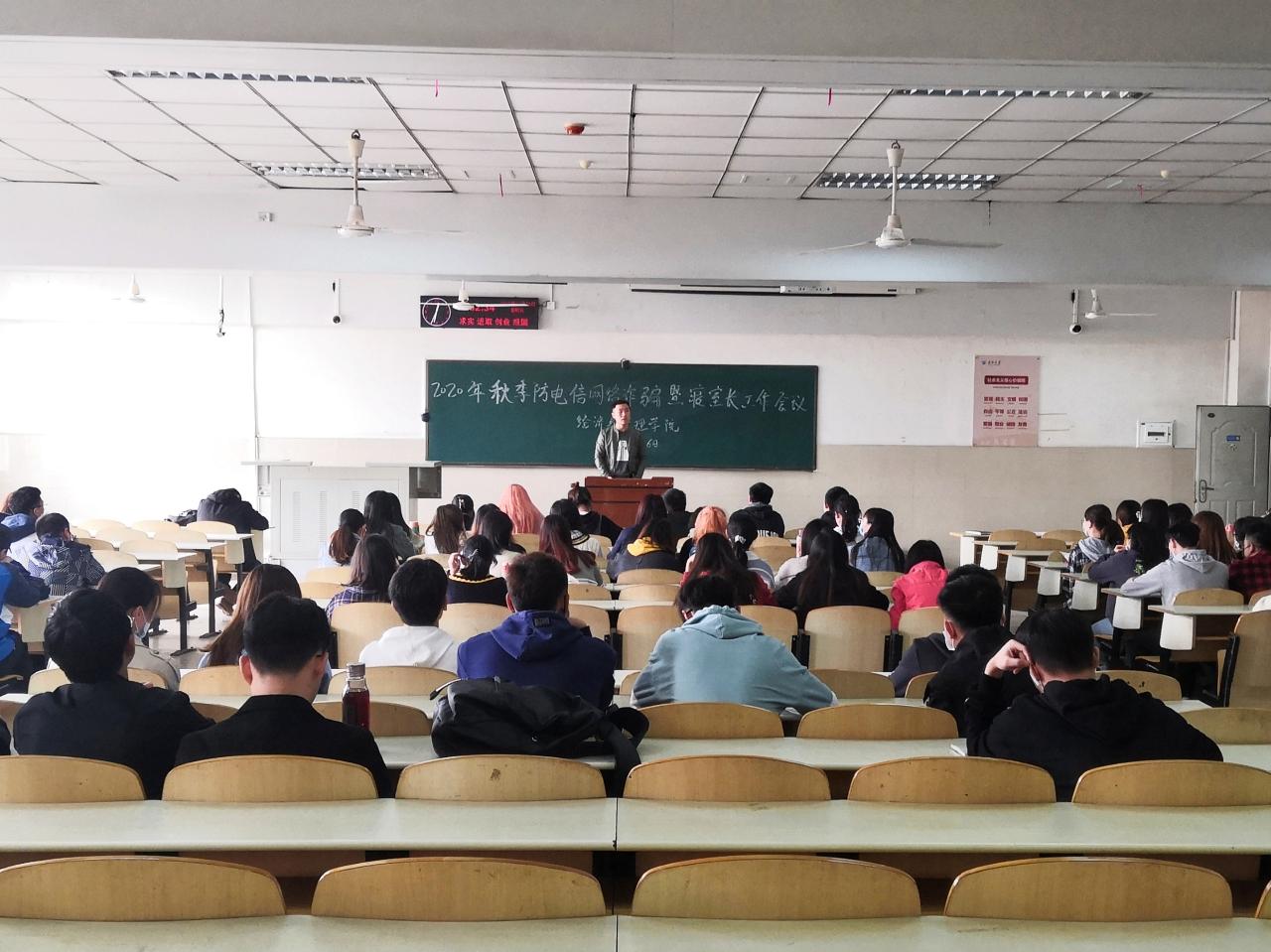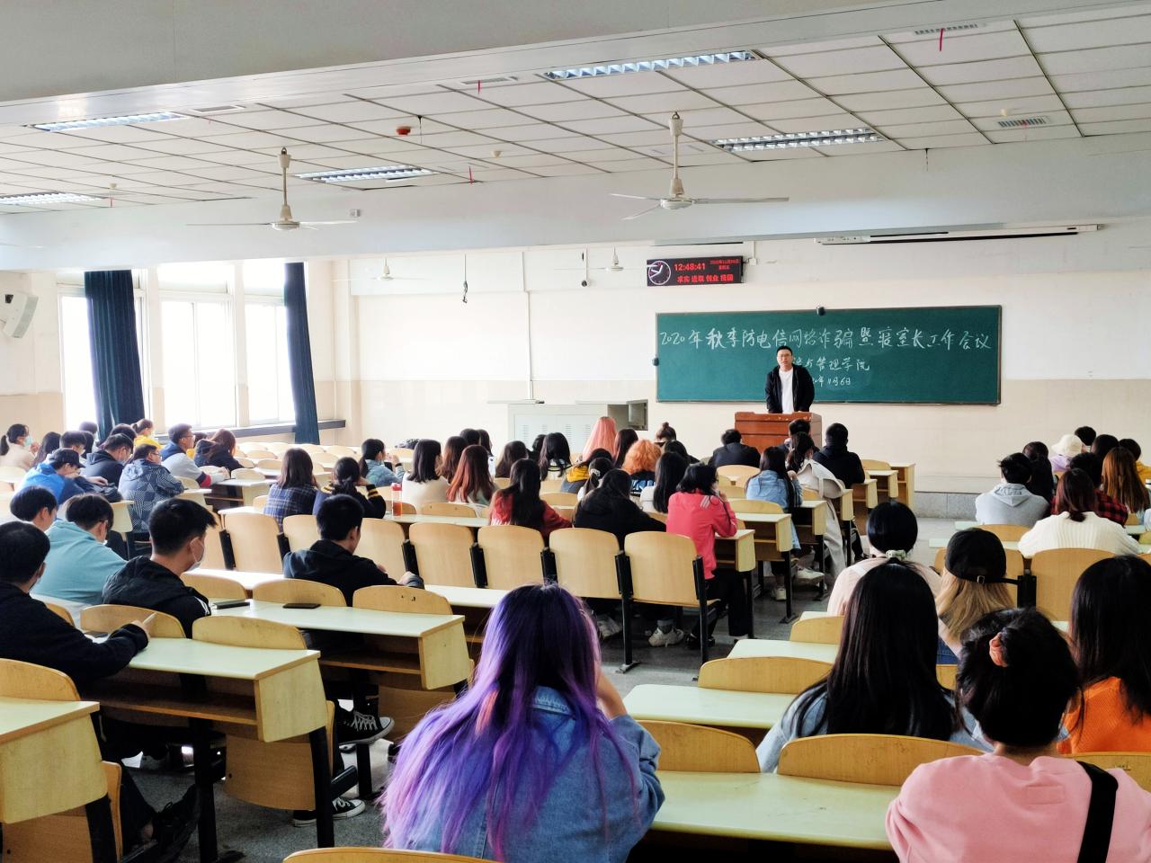 (通讯员 苏帅)“提升安全意识,防范电信诈骗。”11月6日中午,304永利集团登录入口18级管理类专业召开“秋季防电信网络诈骗专题会议暨寝室长工作会议”,学工办主任陈思杭、辅导员李博、各班班长及全体寝室长参加大会。