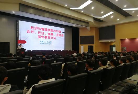 (通讯员:秦睿婕)十月十日下午二时二十分,304永利集团登录入口在西校区农科大楼1058报告厅召开员工教育大会,本次会议由辅导员任玉婷老师主持, 2019级会计、经济、金融、农经系的全体同学参加。