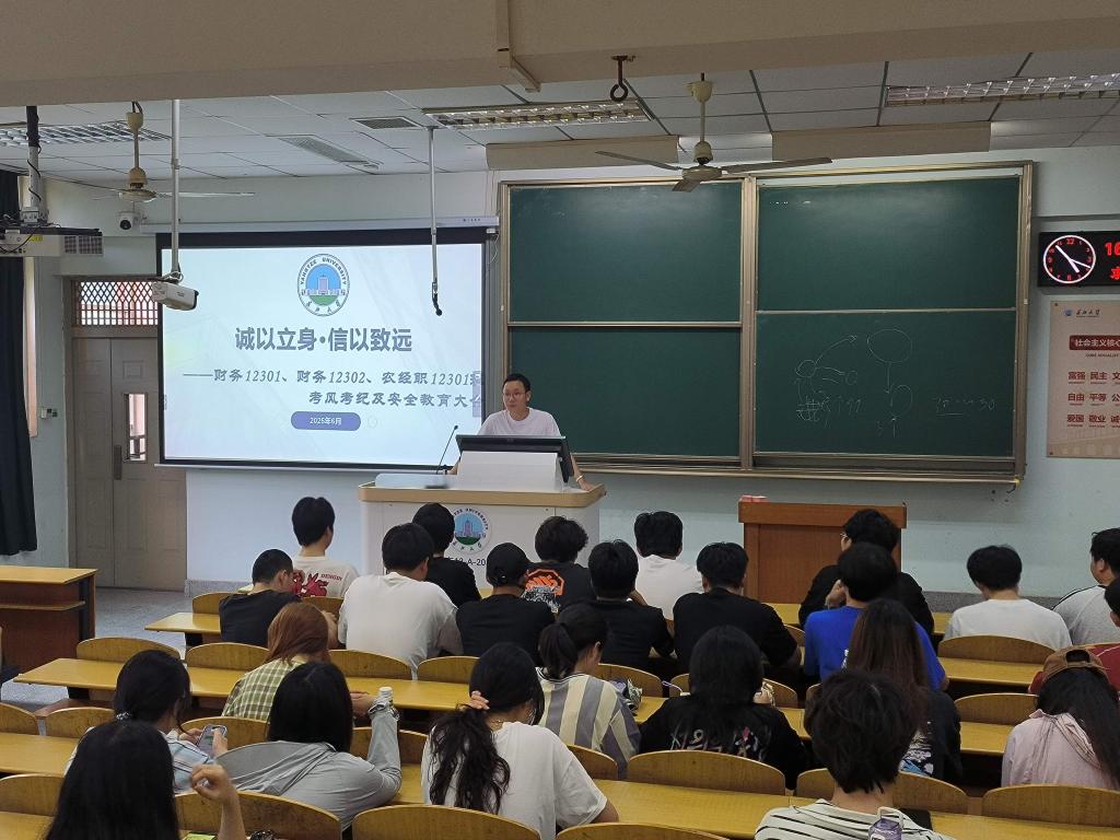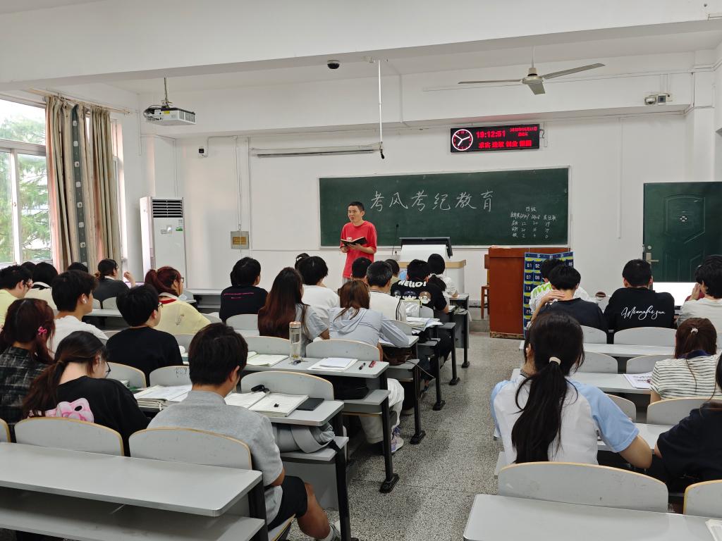 在班会上,辅导员与班主任带领员工深入学习《中华人民共和国刑法修正案(九)》《国家教育考试违规处理办法》《304永利集团登录入口员工违纪处分办法》等文件节选内容。通过逐条解读考试违规认定标准及处分细则,让员工明晰纪律红线。针对学业困难员工,班主任进行了一对一谈心谈话,了解其复习进度和心理状态,鼓励他们合理备考、放下包袱,以积极心态应对考试。
