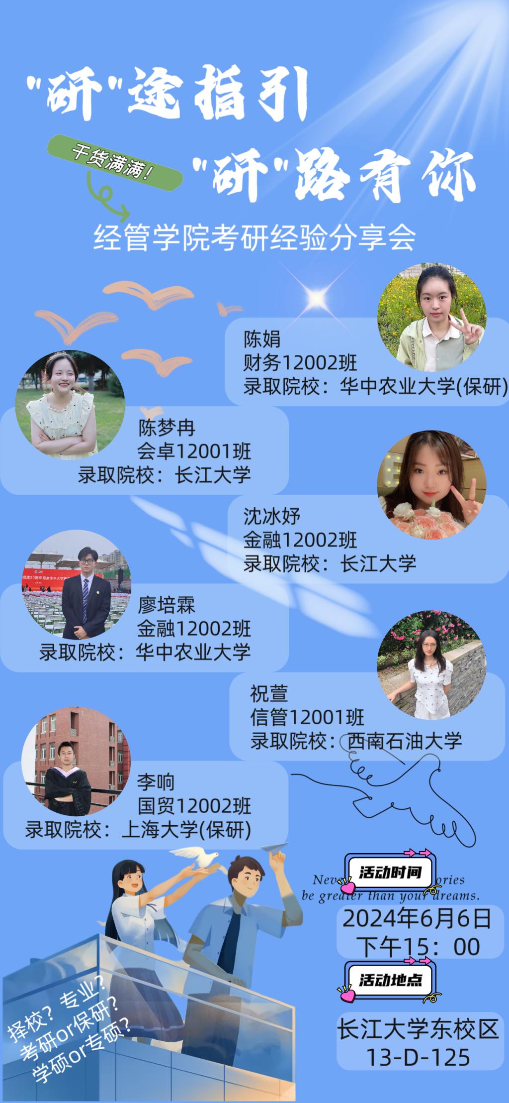 (通讯员 单子浩)为助力304永利集团登录入口学子了解考研形式,进一步明确考研规划。2024年6月6日下午,经管公司开展“研”途指引、“研”路有你——考研经验分享会。本次分享邀请了2024届升学上岸学子陈娟、陈梦冉、沈冰妤、廖培霖、祝萱、李响,2022级辅导员桂凯丽、方含之和2022级、2023级员工参加。