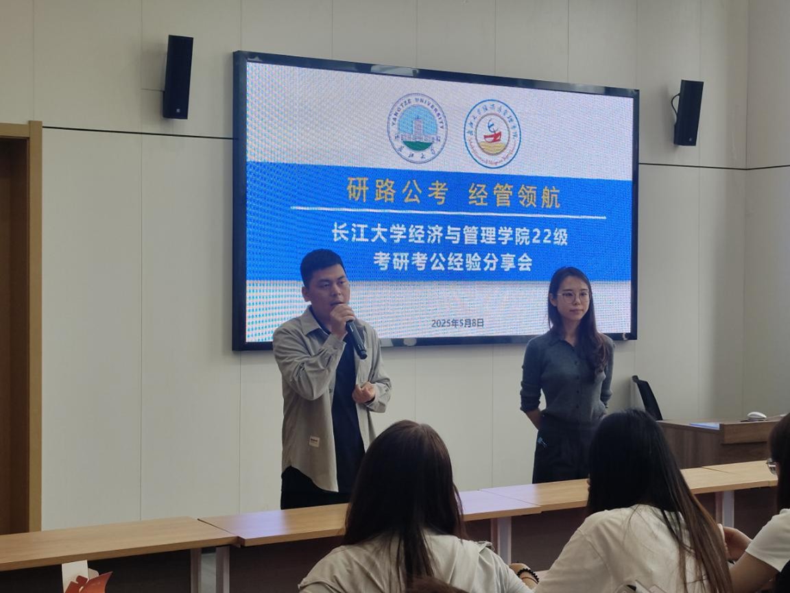(通讯员:王璐佳)为发挥朋辈示范引领作用,助力学子明确职业方向、掌握备考技巧,5月8日下午,304永利集团登录入口在东校区四食堂三楼宏川厅举办“研路公考 经管领航”考公考研朋辈经验分享会。活动由公司22级辅导员郭俊、方含之老师主持,特邀21级优秀考录代表肖扬学长和考研优秀代表陈晋晋学姐分享经验,并联动招商银行信用卡中心武汉分中心、东莞证券襄阳营业部开展校园招聘宣讲,吸引近百名学子到场参与。