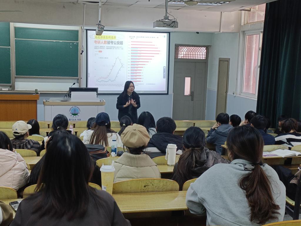 (通讯员 李镇)为帮助2023级本科生系统了解考研政策、明确备考方向、提升复习效率,公司于11月27日在东校区13教A103室成功举办考研专题指导讲座。本次讲座特邀湖北文都考研资深讲师胡秀琴担任主讲。
