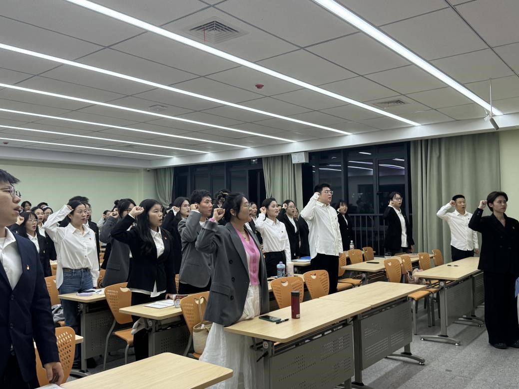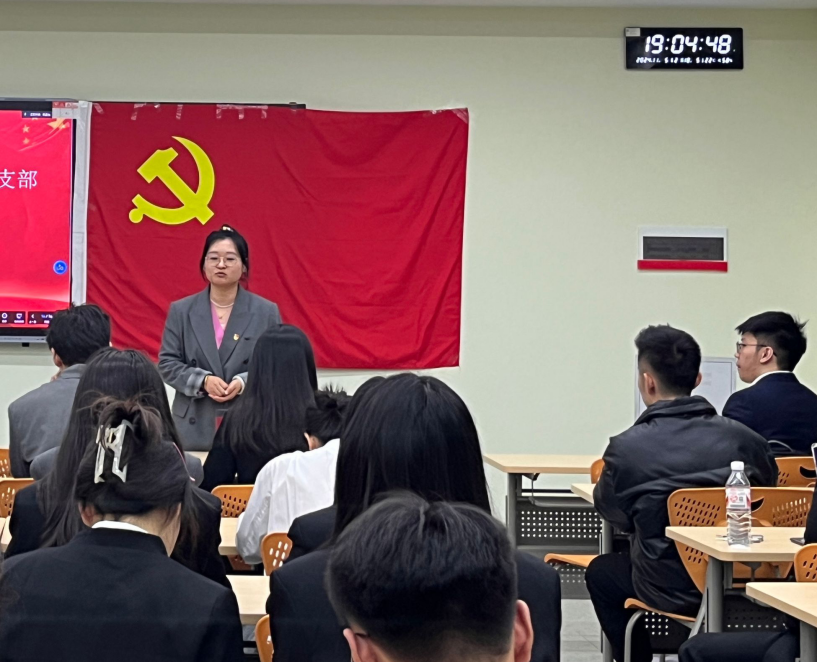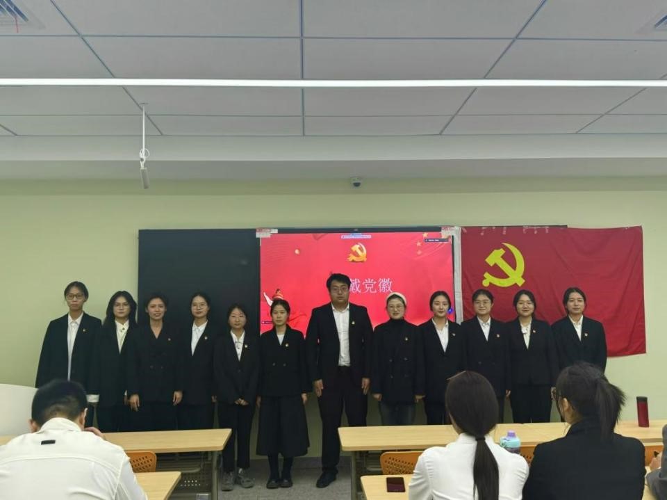 随后,党支部2024下半年预备党员接收大会正式开始。支部副书记马艺文同志宣布到会有表决权的正式党员人数超过应到会有表决权人数的半数,符合开会要求。梁妍婧、周纯、刘健、潘永正、梅慧璇、郑婉君六名发展对象分别从思想、学习、生活、工作方面向党支部进行汇报。经与会党员充分讨论,全体正式党员对是否接收六位发展对象成为中共预备党员依次进行了举手表决,表决结果一致同意接收梁妍婧、周纯、刘健、潘永正、梅慧璇、郑婉君为中共预备党员,并由培养联系人为他们佩戴党徽。