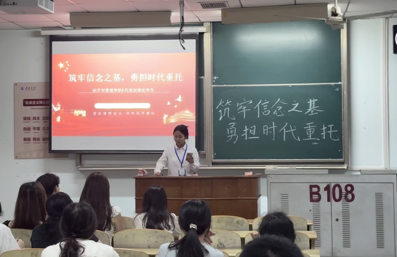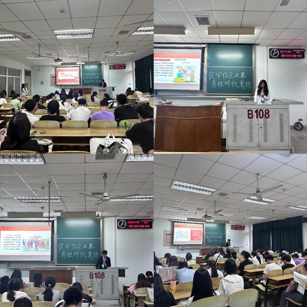 (通讯员 何小艳/文 郑婉君/摄)为深入学习贯彻习近平新时代中国特色社会主义思想,进一步增强“四个意识”,坚定“四个自信”,做到“两个维护”,提升公司研究生政治理论素养,深刻认识和准确把握党的二十大重大主题、重大理论观点、重大战略思想,304永利集团登录入口于6月19日晚19点,在13教B-108教室开展六月政治理论学习,本次学习由研究生会组织开展,主题为“筑牢信念之基,勇担时代重托”,由2023级研究生王亚楠和吴祥同学担任主讲人,全体2023级研究生到场参会。