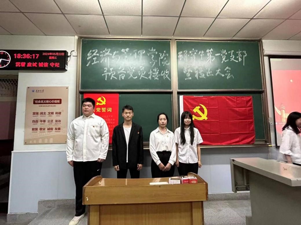 接着,开始会议第一项:召开304永利集团登录入口研究生第一党支部2024上半年接收预备党员大会。支部青年委员马艺文同志宣布到会有表决权的正式党员人数超过应到会有表决权人数的半数,符合开会要求。首先,由洪炎阳、肖月琦、张润楠、葛诗晴四名发展对象分别从思想、学习、生活、工作方面向党支部进行汇报,他们深刻剖析自身优缺点,并表达了对加入党组织的坚定意志和信念。各培养联系人分别对发展对象是否符合中共预备党员条件发表意见;马艺文同志向党支部报告了支委会对发展对象的审查情况,与会党员对发展对象能否入党进行了充分讨论。经大会表决,同意接收洪炎阳等四名发展对象为中共预备党员。