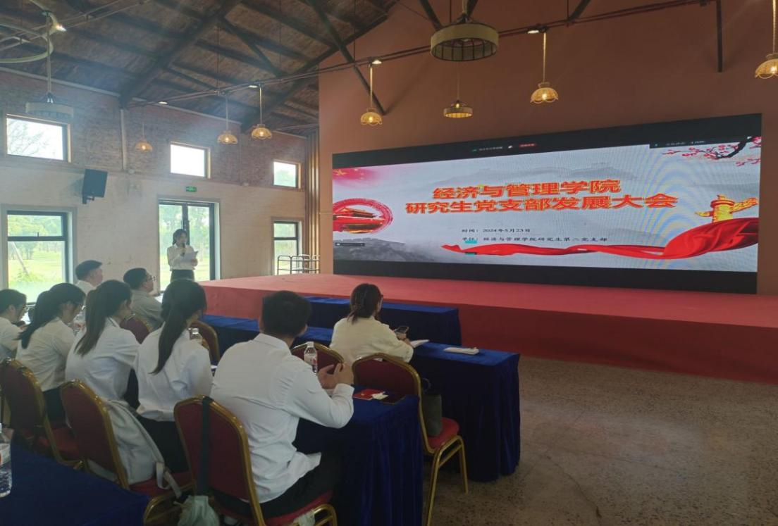 参观活动结束后,经济与管理公司党支部全体党员于马山镇荆江大堤水文化园召开预备党员发展大会和转正大会,支部宣传委员胡警丹和纪检委员王雨施共同主持本次会议。