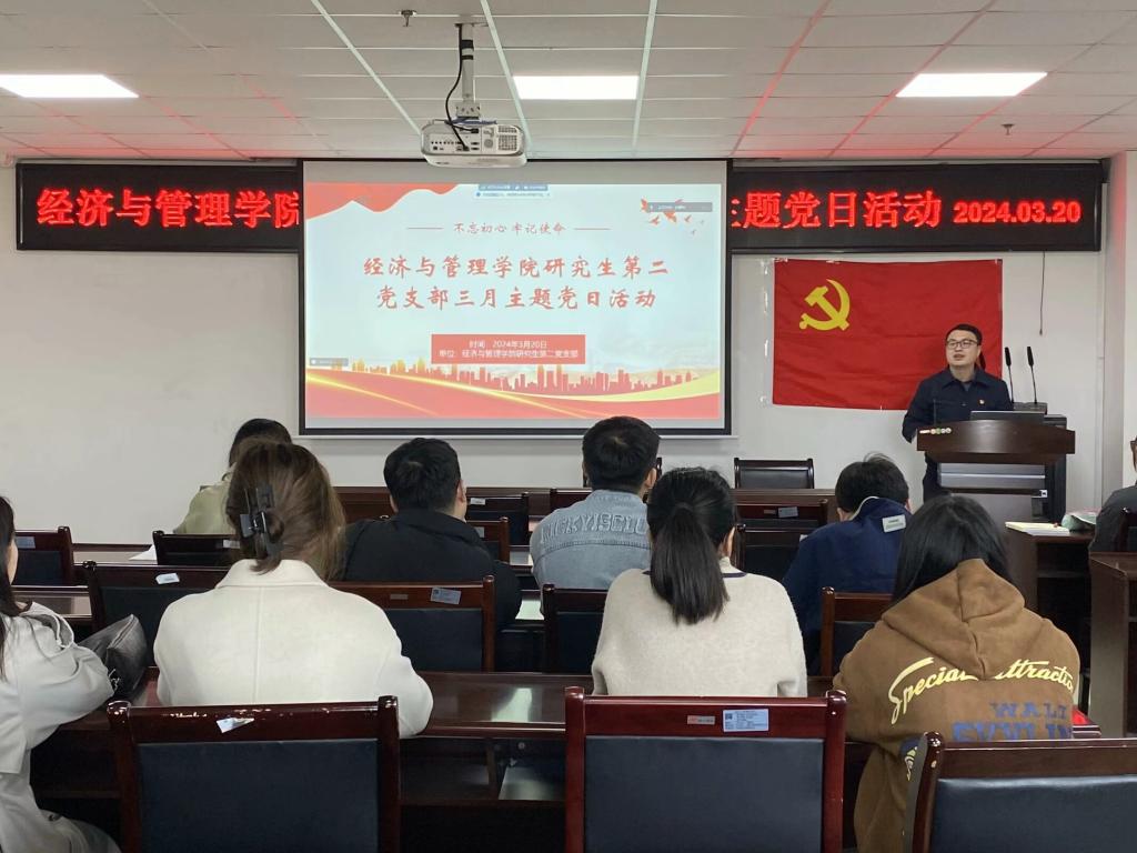(通讯员 王雨施)3月20日,304永利集团登录入口研究生第二党支部全体党员于文科楼605会议室开展3月支部主题党日学习活动,支部青年委员武婕妤主持本次学习活动。