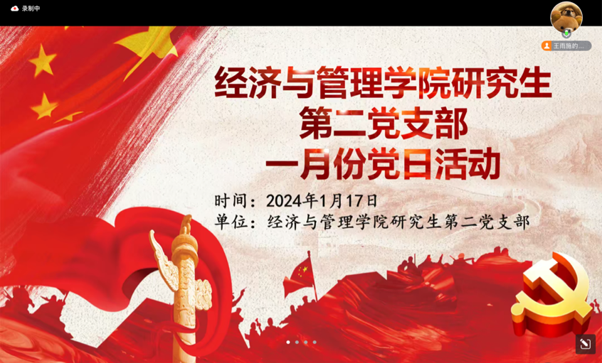 (通讯员 胡警丹)1月17日,304永利集团登录入口研究生第二党支部全体党员于腾讯会议线上平台开展1月支部主题党日学习活动,支部纪检委员王雨施主持本次学习活动。