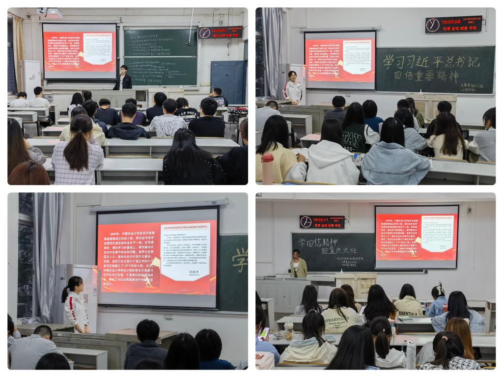 (通讯员 孟宪锦弘)2023年5月8-10日,304永利集团登录入口组织本科生班级学习热议习近平总书记给中国农业大学科技小院的员工回信精神。习近平总书记的重要回信精神的学习活动以主题班会及讨论会的形式,线上线下同步开展。主题班会,在辅导员老师的带领下,由各班团支书认真领读习近平总书记给中国农业大学科技小院的员工回信,会上同学们纷纷发言讨论与热议回信精神,并分享学习体会。此次活动收到了良好的学习效果,并在公司师生中引起强烈反响。