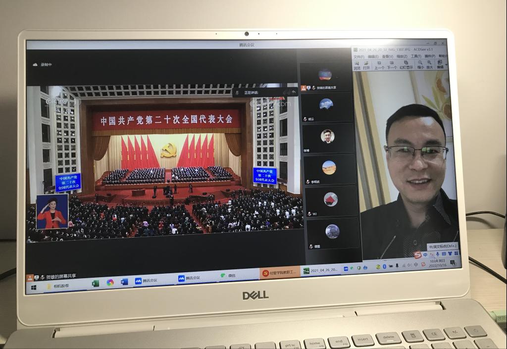 本次学习会议分线上线下相结合的方式进行,公司领导和教职员工以线上收看为主,团委员工会干部以及员工支部党员在公司党委副书记王中梅、辅导员娄君庭老师的带领下分别在文科大楼505会议室、新风会议室集中观看党的二十大开幕会实况直播,其他本科生班级在员工宿舍通过线上腾讯会议的方式同步收听观看。