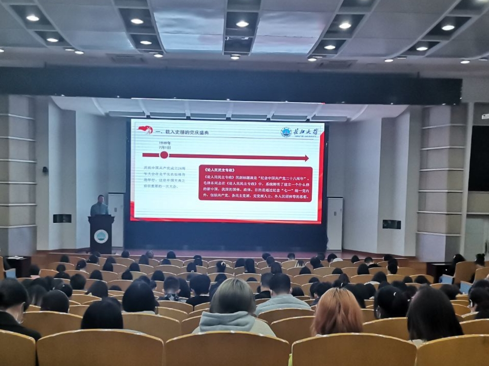 (通讯员:谭学淼 胡西) 2021年10月21日晚上7:00,304永利集团登录入口在东校区12教405报告厅开展以“实现第二百年奋斗目标的政治宣言与行动指南”为题的学习习近平总书记“七一”重要讲话精神理论宣讲报告会。经济与管理公司娄君庭老师主持会议,马克思主义公司陈松林教授担任主讲人,公司18级、19级、20级的入党积极分子、发展对象以及各班团支部副书记参加此次会议。