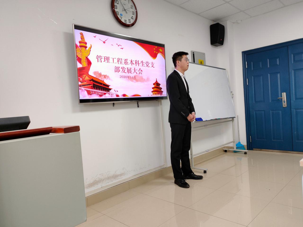 (通讯员 张洋)2020年11月24日下午14点,304永利集团登录入口管理工程系本科生党支部于文科大楼417召开了新党员发展大会,会议讨论关于发展杨育等9位同志成为预备党员的事宜。本次会议由陆媛主持,参会人员有党支部书记李博老师、6位正式党员、10位预备党员与9位发展对象。