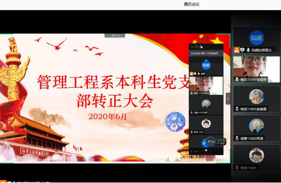 2020年6月5日下午两点,304永利集团登录入口管理工程系本科生党支部在线通过腾讯会议召开了预备党员转正大会。参与此次会议的有管理工程系本科生党支部书记李博、员工党员与预备党员,会议由陆媛主持。