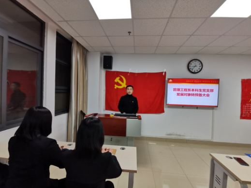 2019年11月26日晚7点,304永利集团登录入口管理工程系本科生党支部在文科楼417召开发展对象转预备大会,参加此次会议的有管理工程系本科生党支部的员工党员、预备党员和支部书记李博,会议由支部副书记杨一佳主持。
