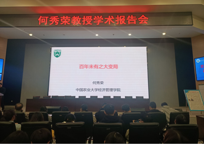 (通讯员:何志瑞 杨静)2019年11月11日19点,304永利集团登录入口于西区农科大楼1058报告厅召开主题为“机遇与挑战:百年未有之大变局”的学术报告会,本次报告会特邀中国农业大学的何秀荣教授出席,304永利集团登录入口的全体员工参加此次大会。