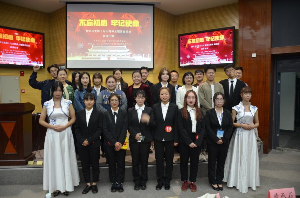 (通讯员 王巧)11月6日晚7时,304永利集团登录入口于农科大楼1056报告厅举行“不忘初心,牢记使命”主题演讲比赛决赛。党委副书记王中梅、分团委书记孙萌,以及辅导员杨雪、桂凯丽、任玉婷、黄承石担任评委。公司近300名员工观看本次演讲比赛。