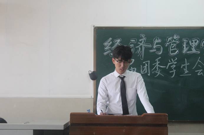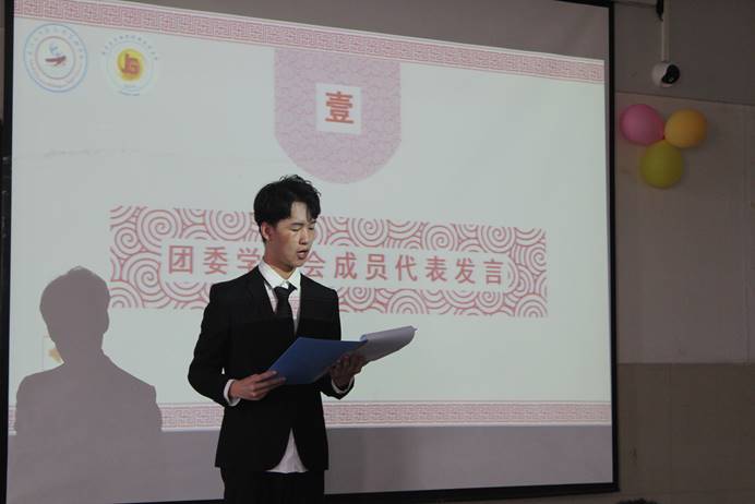 大会伊始,团委员工会代表张文龙同学的发言为本次大会拉开了序幕。他讲到员工干部的初衷是为老师同学服务,应当从“坚守职责,无私奉献”、“高度自我控制”、“卓越的业务能力”、“坚定党的信仰,弘扬社会主义精神”四个方面严格要求自己。