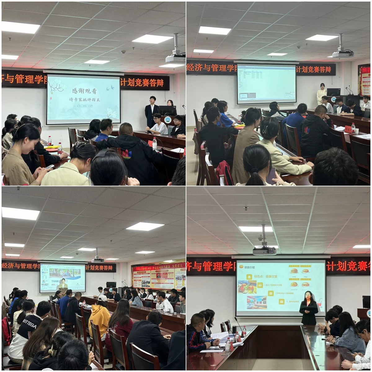 主持人宣布活动开始后,各组代表按照前期抽签顺序依次上台答辩。答辩过程中,同学们细致严谨,全方位地展示各自的项目,紧密结合时代发展主题,围绕民生日常,展示了项目的文化背景、实施基础、现实价值、发展潜能等。如程紫霞同学代表的“荆楚鱼韵”项目和柯志同学代表的“荆楚非遗数字典藏平台”项目,均体现了对荆楚文化的传承和弘扬,凸显了荆楚大地的鲜明特色和独特魅力;有的项目则聚焦于当下社会热点,如“时间银行互助养老志愿服务平台”,体现了新时代老员工对于社会养老问题的思考和积极实践;再如“长青树校园兼职平台”、“304永利集团登录入口汉堡店”项目等,同学们着眼于校园实际,关注日常生活,表现了大家对身边环境的观察与思考。在点评指导环节,评委们围绕答辩人的阐述汇报和创业计划书的撰写情况,提出了相应问题,并由项目成员逐一作答。在问辩的过程中,同学们也进一步拓展了自己的思路,明确了项目的不足之处,以及可以突破的新发展方向。最终根据评委打分,竞赛产生了排名前五的项目团队,他们将代表公司参加下一阶段的校级选拔赛。